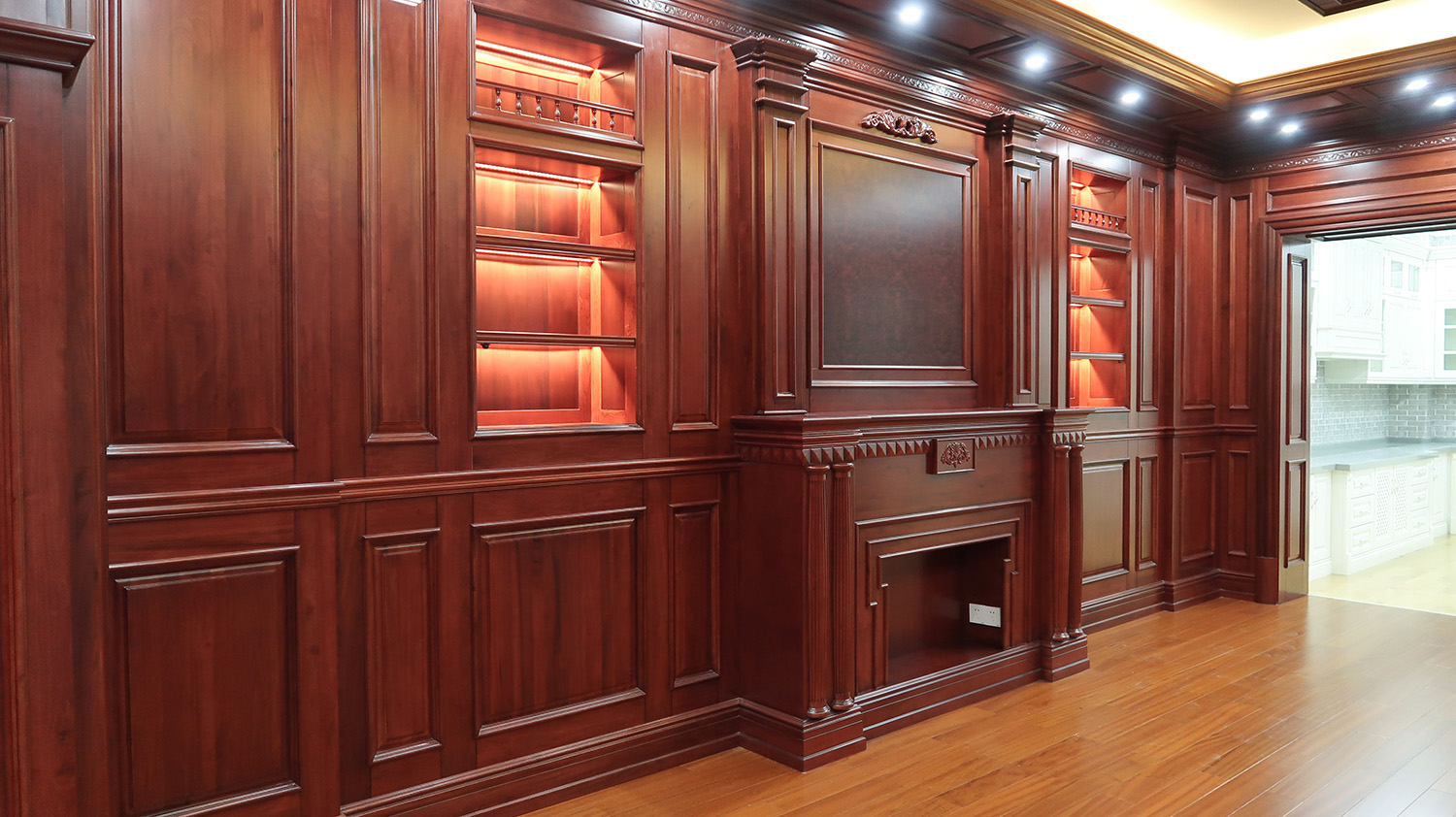真和公司根据不同顾客的需求,结合顾客的住房空间,利用各种元素,设计制造各类:墙板、整体衣帽间、整体橱柜、书柜、鞋柜、酒柜、酒窖、浴室柜、木门、楼梯以及天花吊顶等原木定制家居产品,服务国内外各类用户的全屋定制个性化的需求;别墅豪宅整栋全屋实木家居设计生产等。